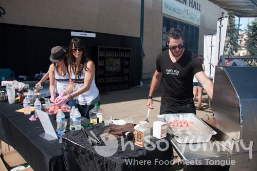 We first found Haks BBQ, which was right outside the entrance to the event. Chef Sharone Hakman sold a feisty bbq sauce to complement the all natural beef slider and kobe beef sausage! The slider was cooked about medium but Dennis and I prefer at least medium well for this kind of meat. Our favorite dish from them was the sausage though, which had a nice crisp on the outside and bursting with juicy flavor on the inside! I want to find their vendor for that meat!